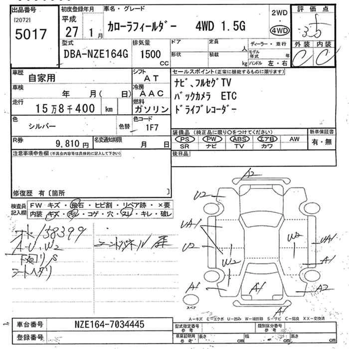 TOYOTA COROLLA FIELDER 2015 г., лот № 5017