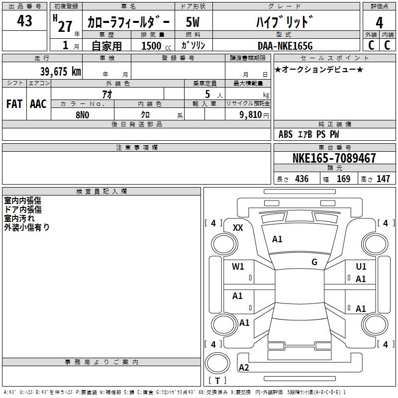 TOYOTA COROLLA FIELDER 2015 г., лот № 43