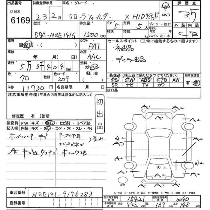 TOYOTA COROLLA FIELDER 2011 г., лот № 6169