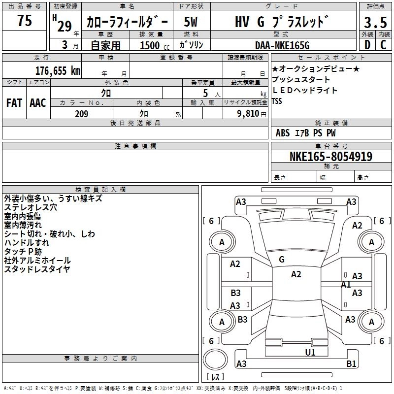 TOYOTA COROLLA FIELDER 2017 г., лот № 75