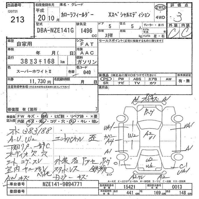 TOYOTA COROLLA FIELDER 2008 г., лот № 213