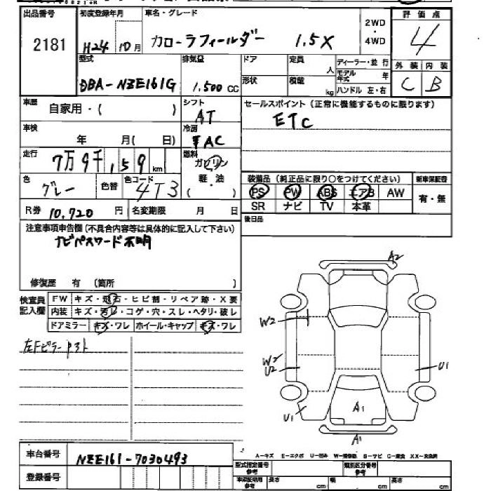 TOYOTA COROLLA FIELDER 2012 г., лот № 2181