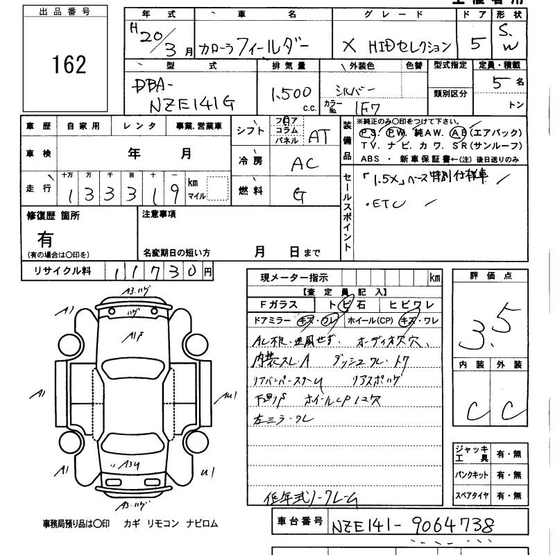 TOYOTA COROLLA FIELDER 2008 г., лот № 162