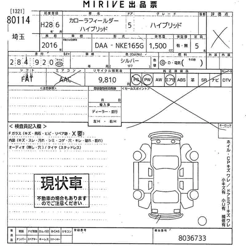Статус выставлен на аукцион Лот 80114 Аукцион MIRIVE Saitama Дата аукциона 11.03.2026
