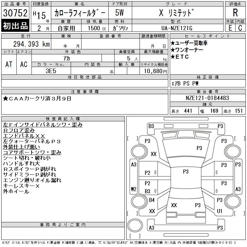 Статус выставлен на аукцион Лот 30752 Аукцион CAA Chubu Дата аукциона 11.03.2026