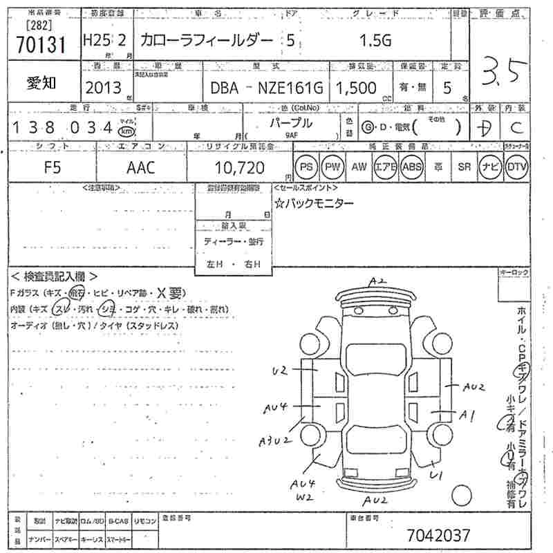TOYOTA COROLLA FIELDER 2013 г., лот № 70131