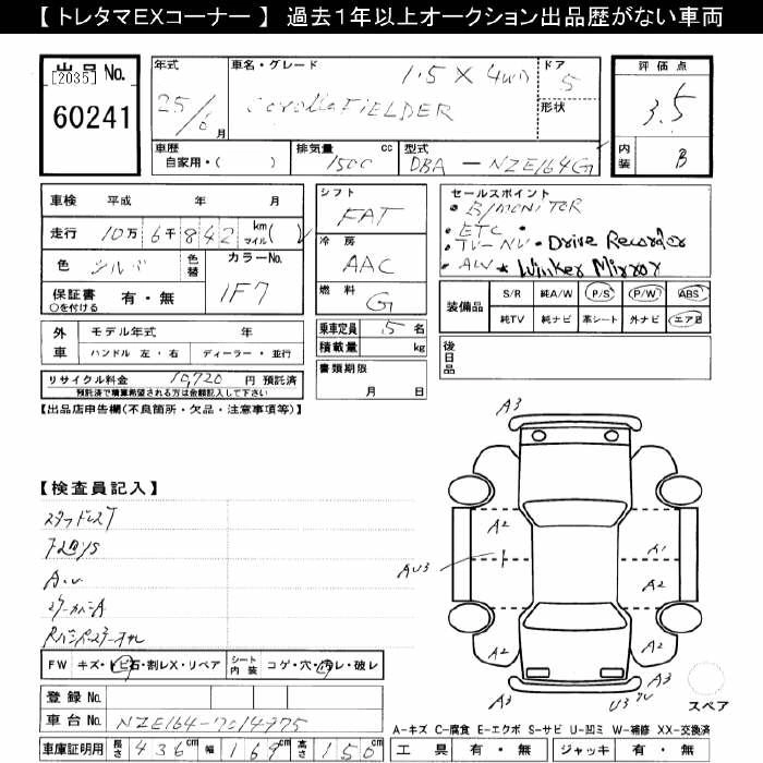 TOYOTA COROLLA FIELDER 2013 г., лот № 60241