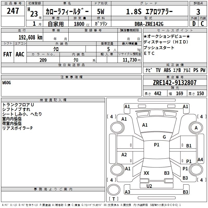 TOYOTA COROLLA FIELDER 2011 г., лот № 247