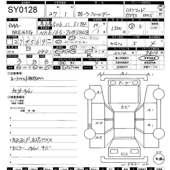 TOYOTA COROLLA FIELDER 2015 г., лот № 128