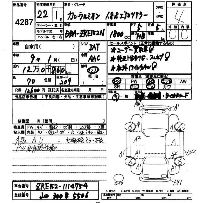 Стартовая цена авто на аукционе 0 ¥