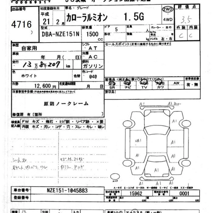 Статус выставлен на аукцион Лот 4716 Аукцион JU Ibaraki Дата аукциона 11.03.2026
