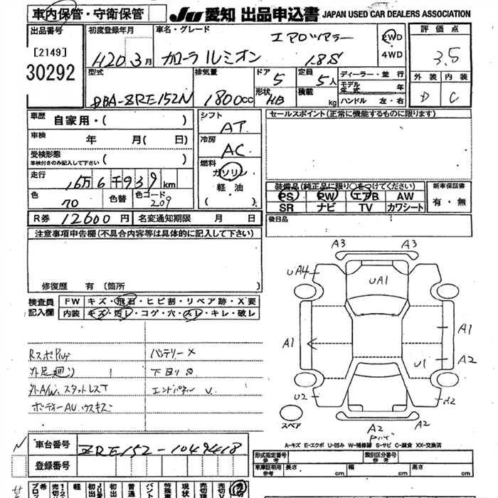 Статус выставлен на аукцион Лот 30292 Аукцион JU Aichi Дата аукциона 12.03.2026