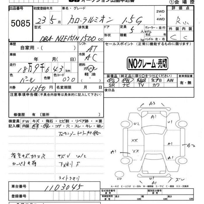 Статус продан Лот 5085 Аукцион JU Chiba Дата аукциона 20.03.2026
