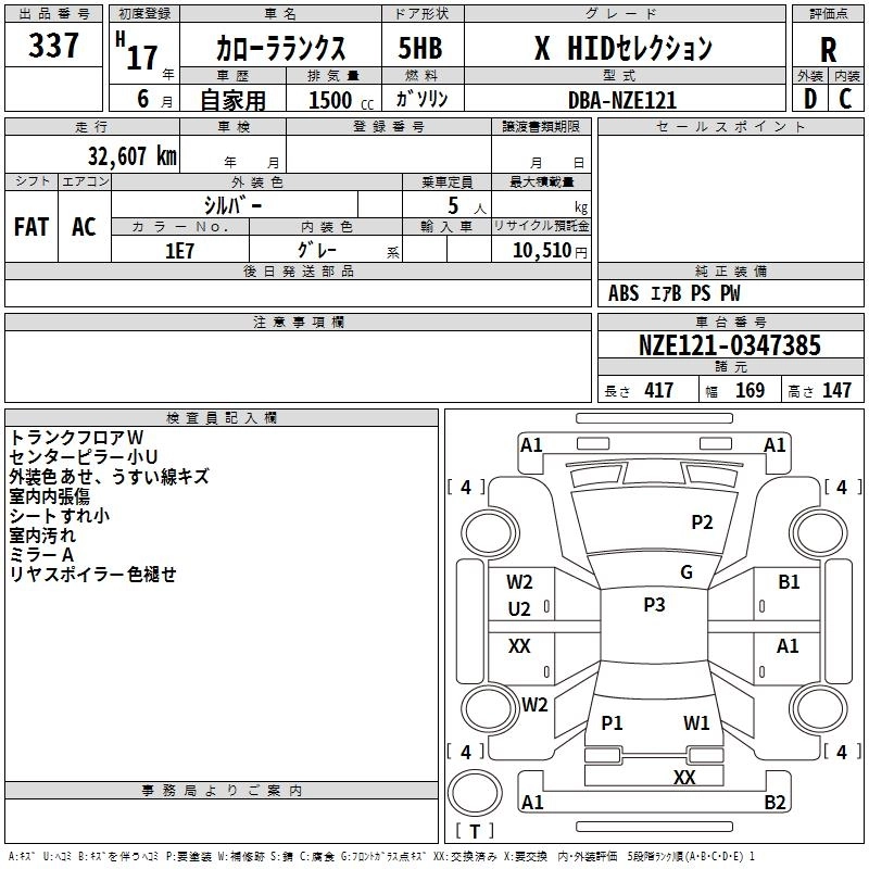 TOYOTA COROLLA RUNX 2005 г., лот № 337