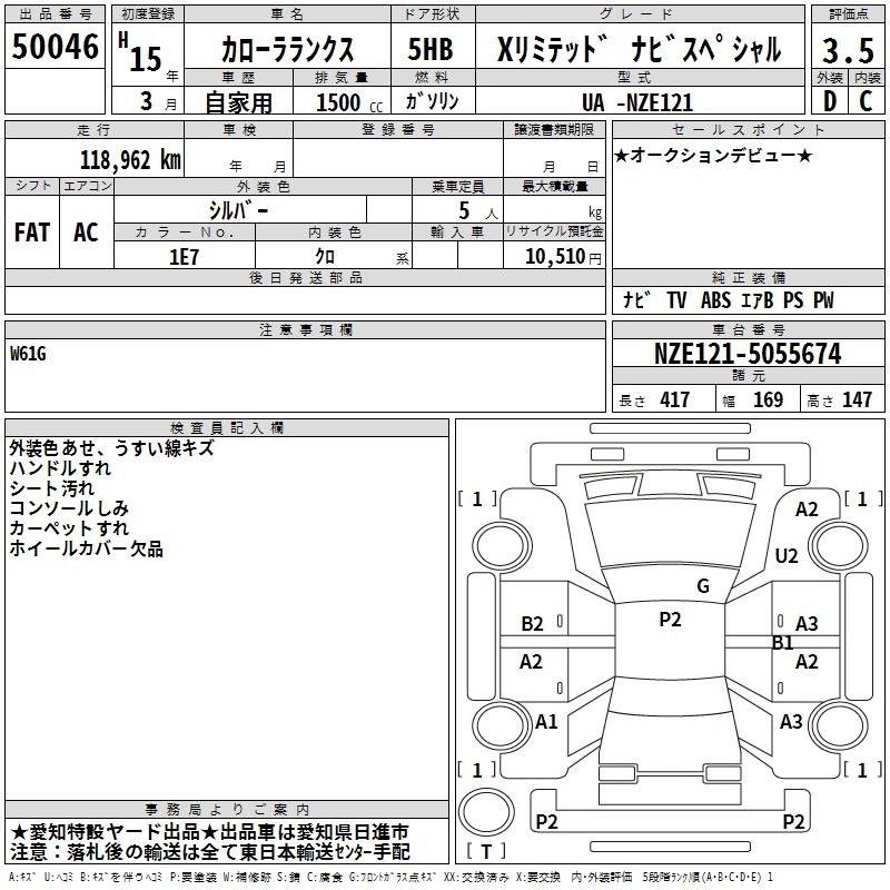 Статус выставлен на аукцион Лот 50046 Аукцион TAA Chubu Дата аукциона 19.03.2026