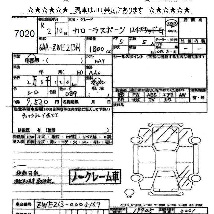 Статус продан Лот 7020 Аукцион JU Hokkaido Дата аукциона 23.01.2026