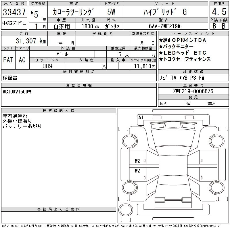 Год выпуска2023 Пробег 31 000 км КузовZWE219W Комплектация HYBRID G