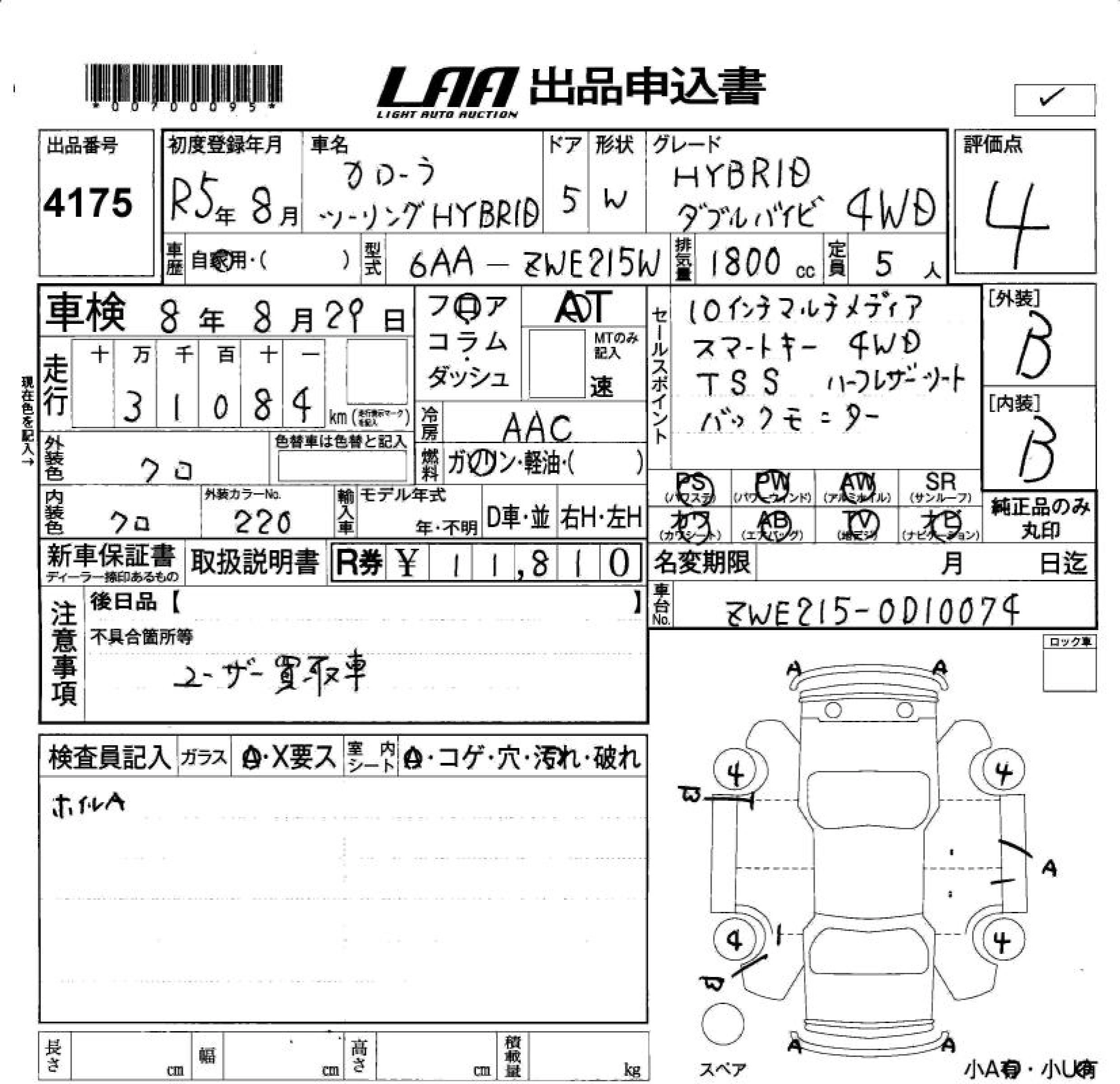 Статус не продан Лот 4175 Аукцион LAA Okayama Дата аукциона 23.01.2026