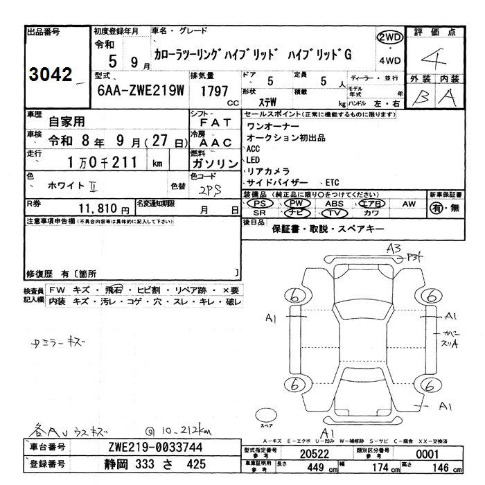 TOYOTA COROLLA WAGON 2023 г., лот № 3042