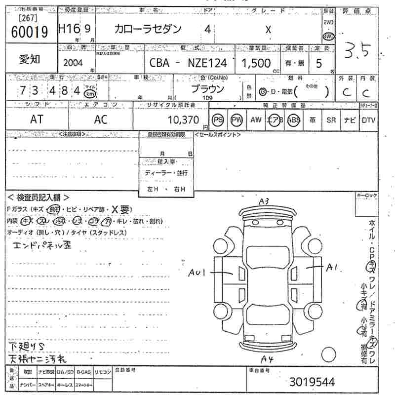 TOYOTA COROLLA 2004 г., лот № 60019