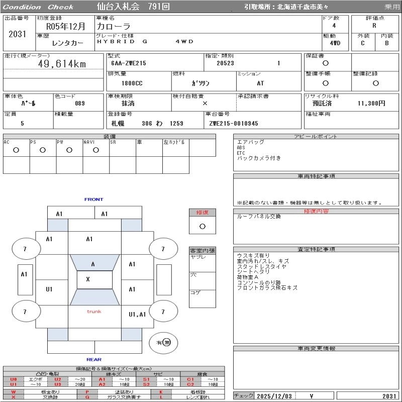 Статус выставлен на аукцион Лот 2031 Аукцион ORIX Sendai Дата аукциона 09.12.2025