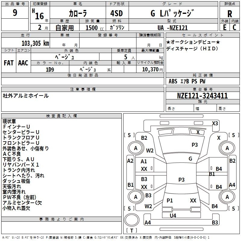 Год выпуска2004 Пробег 103 000 км КузовNZE121 КомплектацияG L PACKAGE