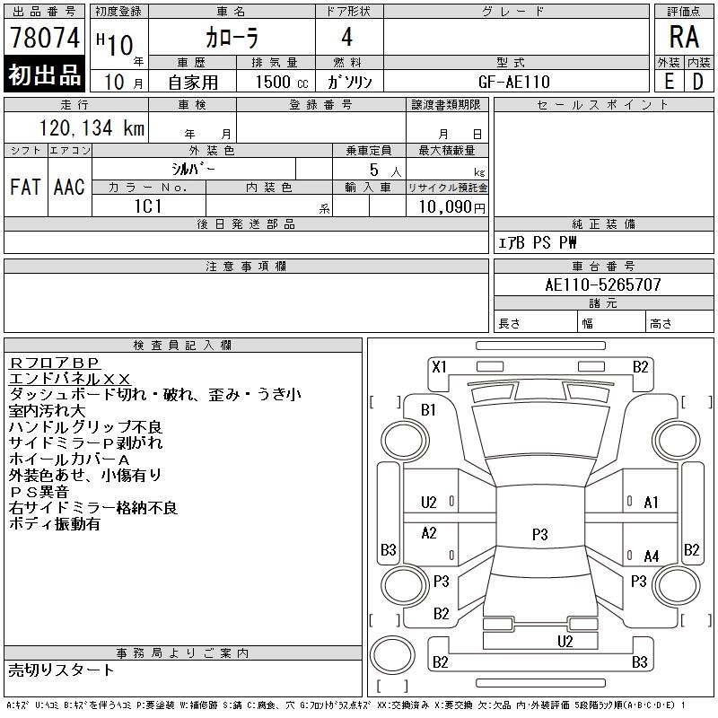Год выпуска1998 Пробег 120 000 км КузовAE110