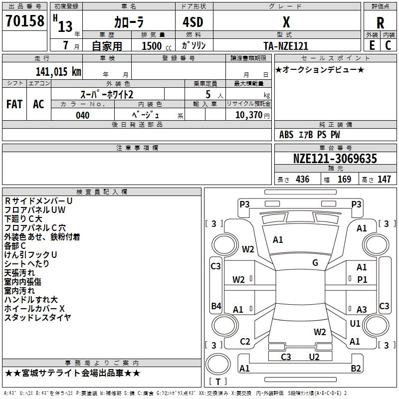 TOYOTA COROLLA 2001 г., лот № 70158