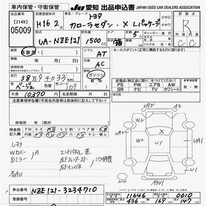Статус выставлен на аукцион Лот 5009 Аукцион JU Aichi Дата аукциона 12.03.2026