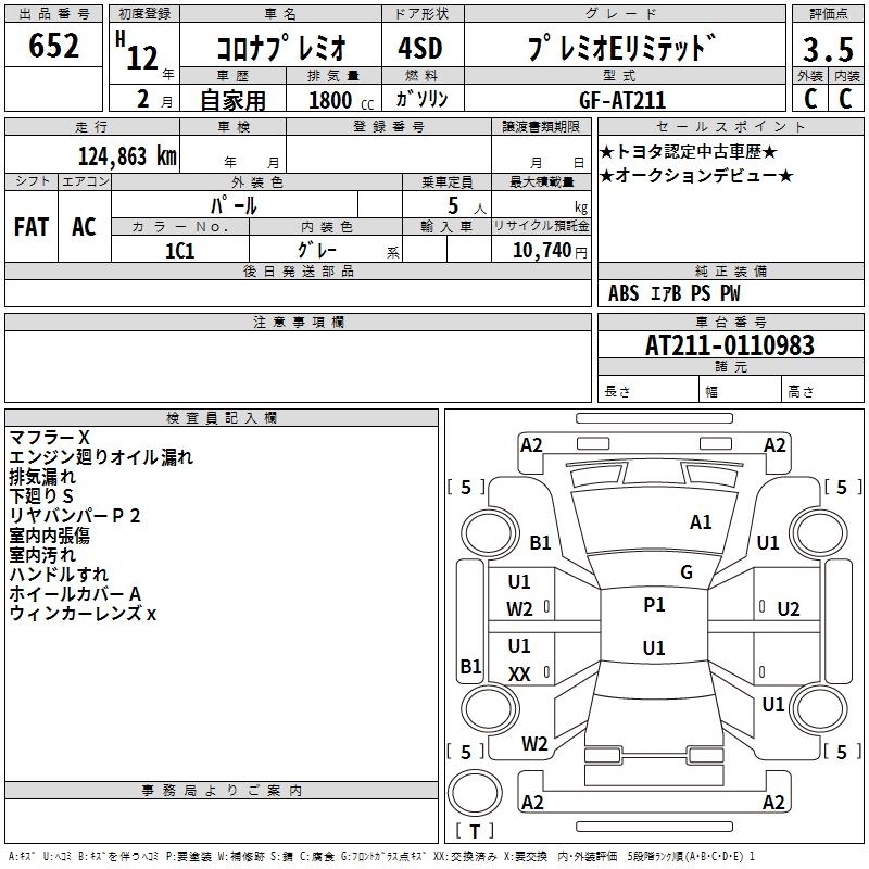 Год выпуска2000 Пробег 125 000 км КузовAT211 Комплектация PREMIO E LIMITED