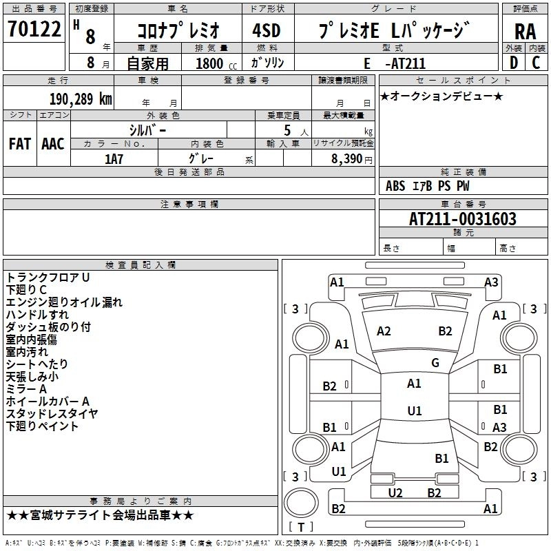 Год выпуска1996 Пробег 190 000 км КузовAT211 Комплектация PREMIO E L PACKAGE