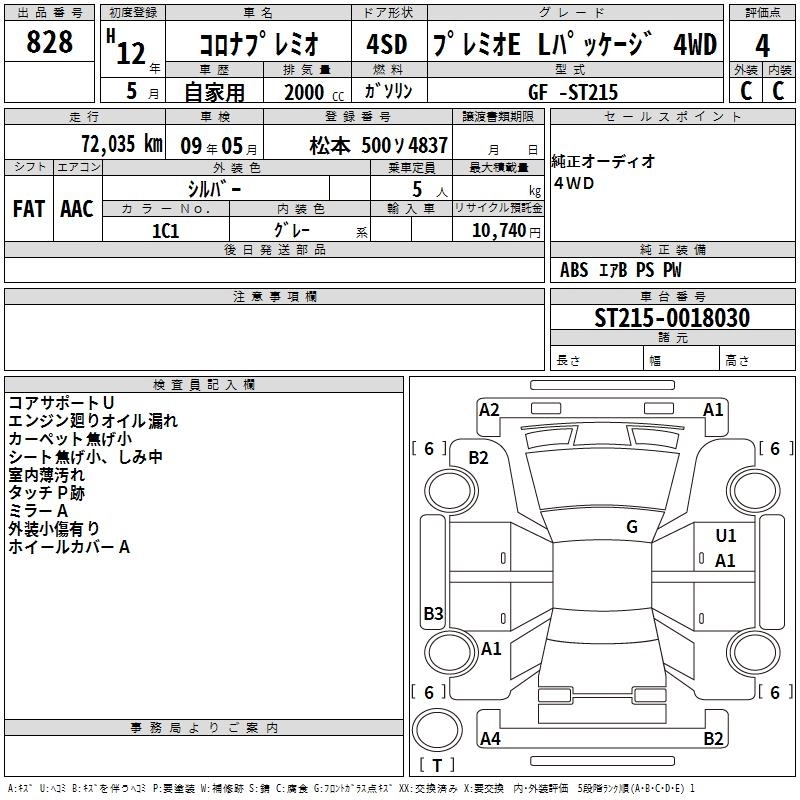 Год выпуска2000 Пробег 72 000 км КузовST215 Комплектация PREMIO E L PACKAGE 4WD
