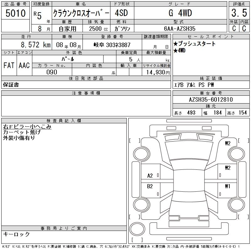 Статус выставлен на аукцион Лот 5010 Аукцион CAA Gifu Дата аукциона 21.10.2025