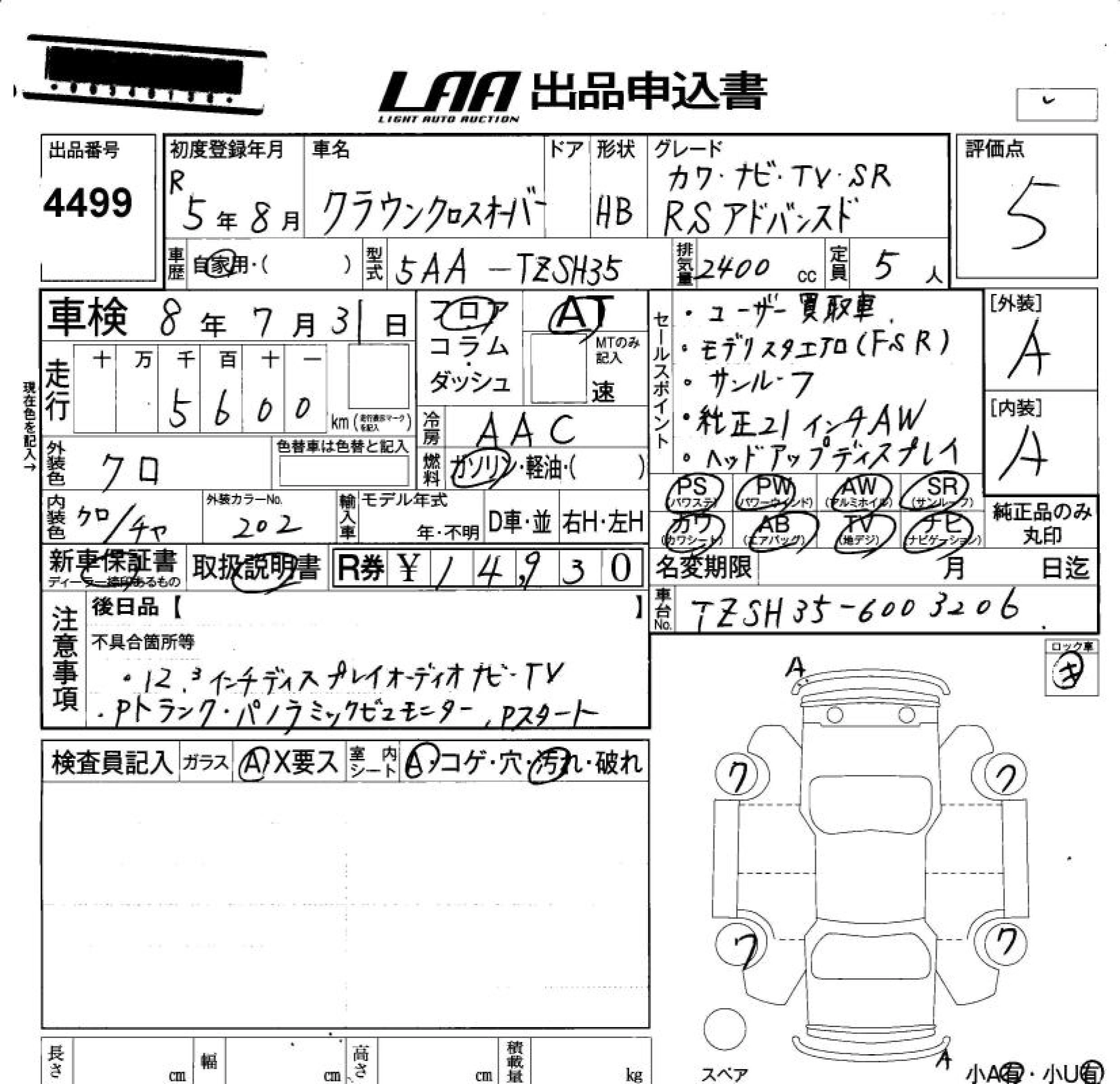 Статус не продан Лот 4499 Аукцион LAA Okayama Дата аукциона 23.01.2026