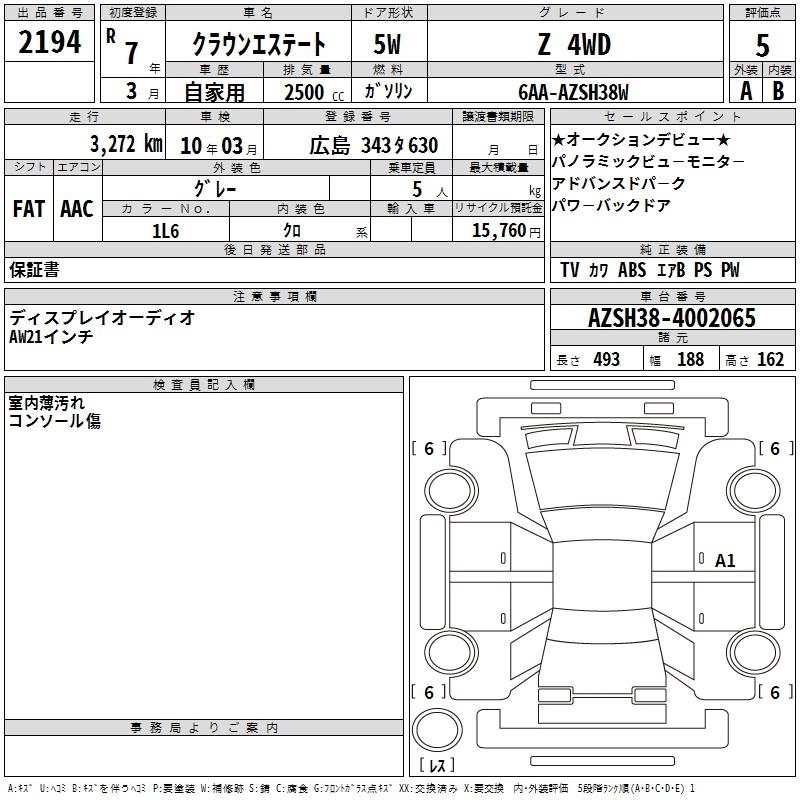 Статус выставлен на аукцион Лот 2194 Аукцион TAA Hiroshima Дата аукциона 10.03.2026