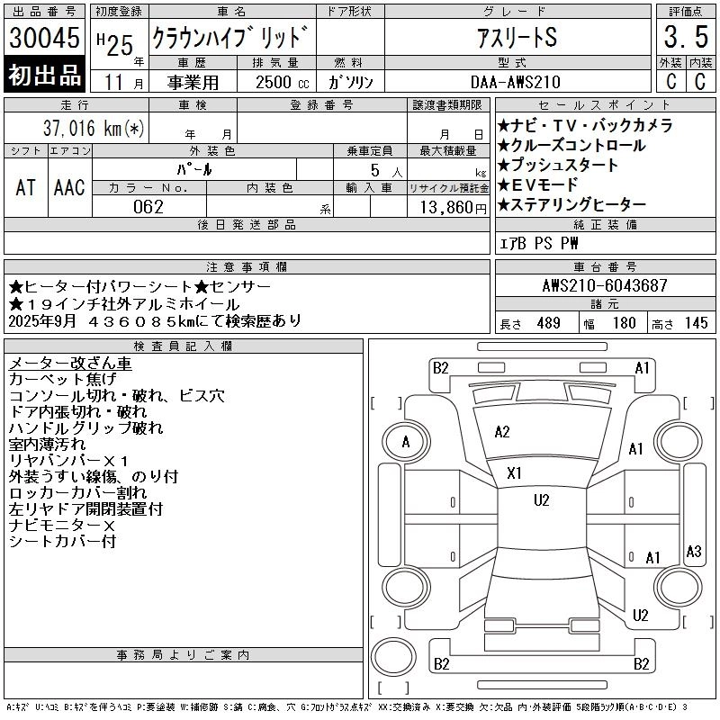 TOYOTA CROWN HYBRID 2013 г., лот № 30045