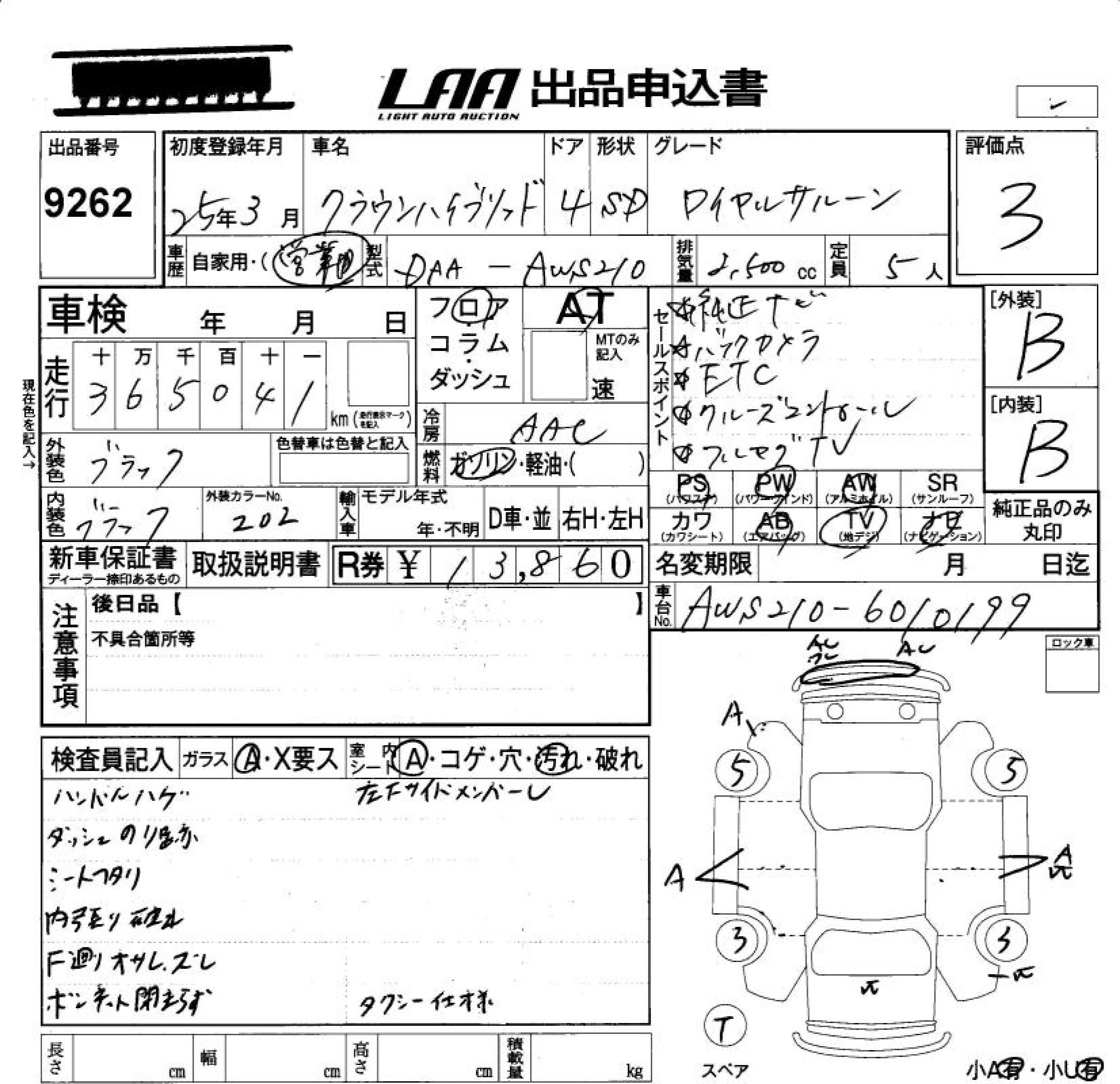 Статус продан Лот 9262 Аукцион LAA Okayama Дата аукциона 24.10.2025