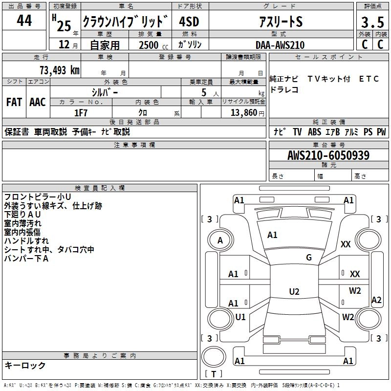 TOYOTA CROWN HYBRID 2013 г., лот № 44