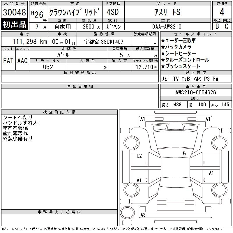 TOYOTA CROWN HYBRID 2014 г., лот № 30048