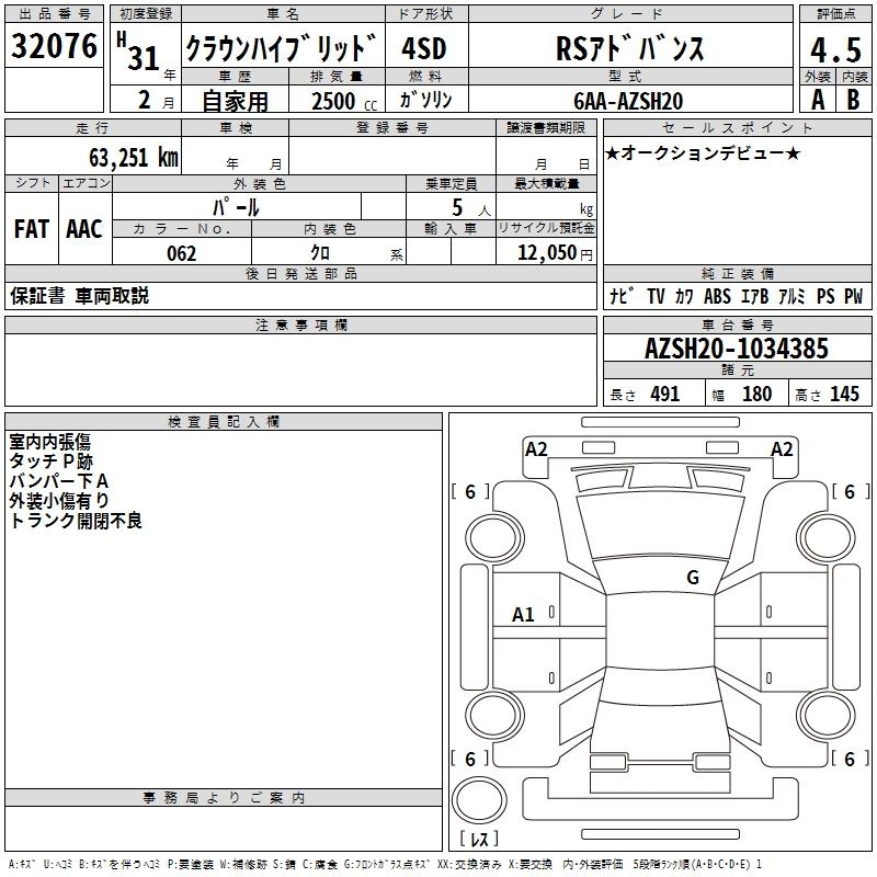 TOYOTA CROWN HYBRID 2019 г., лот № 32076
