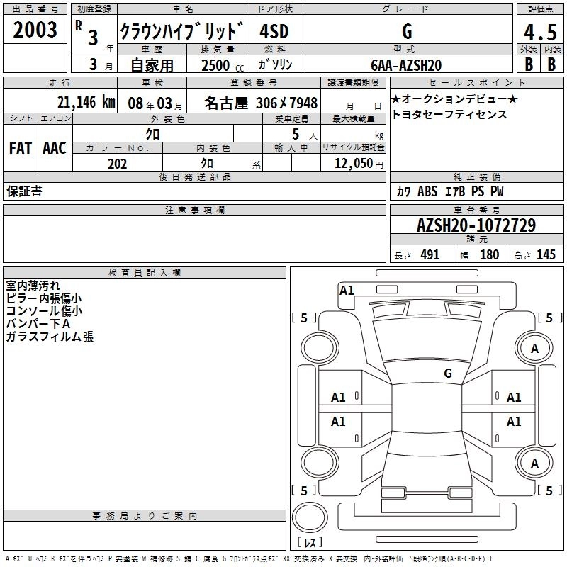Статус выставлен на аукцион Лот 2003 Аукцион TAA Chubu Дата аукциона 11.12.2025