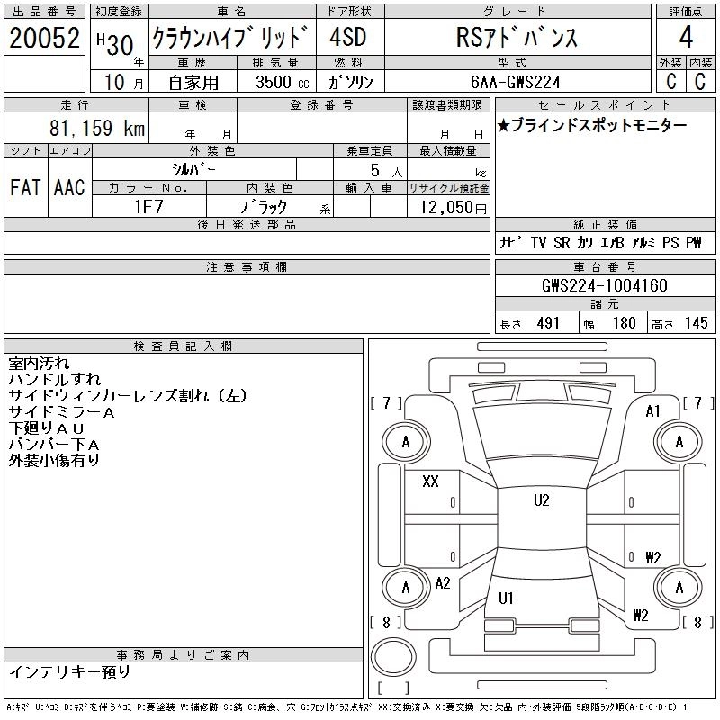Статус выставлен на аукцион Лот 20052 Аукцион CAA Chubu Дата аукциона 10.12.2025