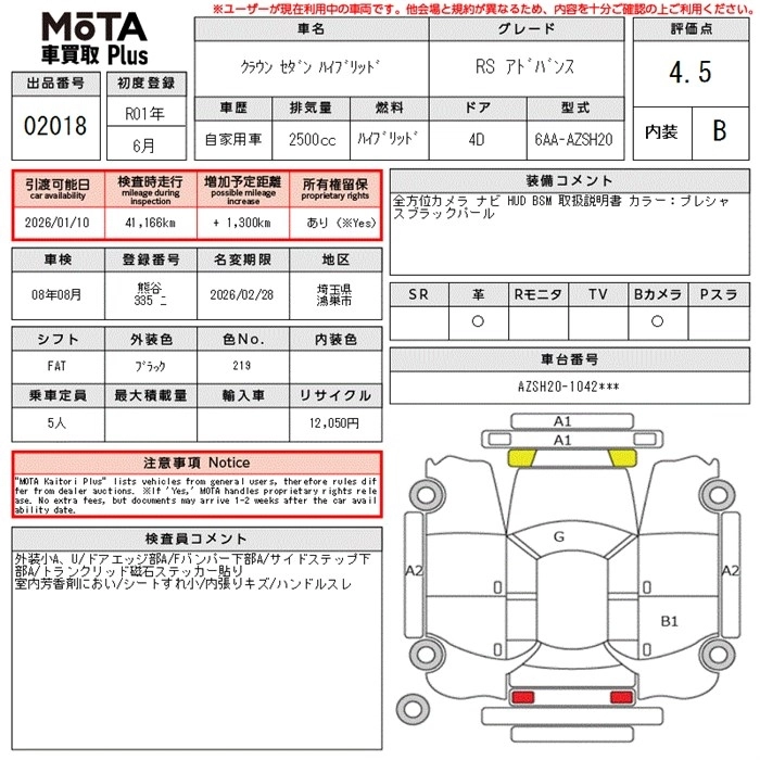 TOYOTA CROWN HYBRID 2019 г., лот № 2018
