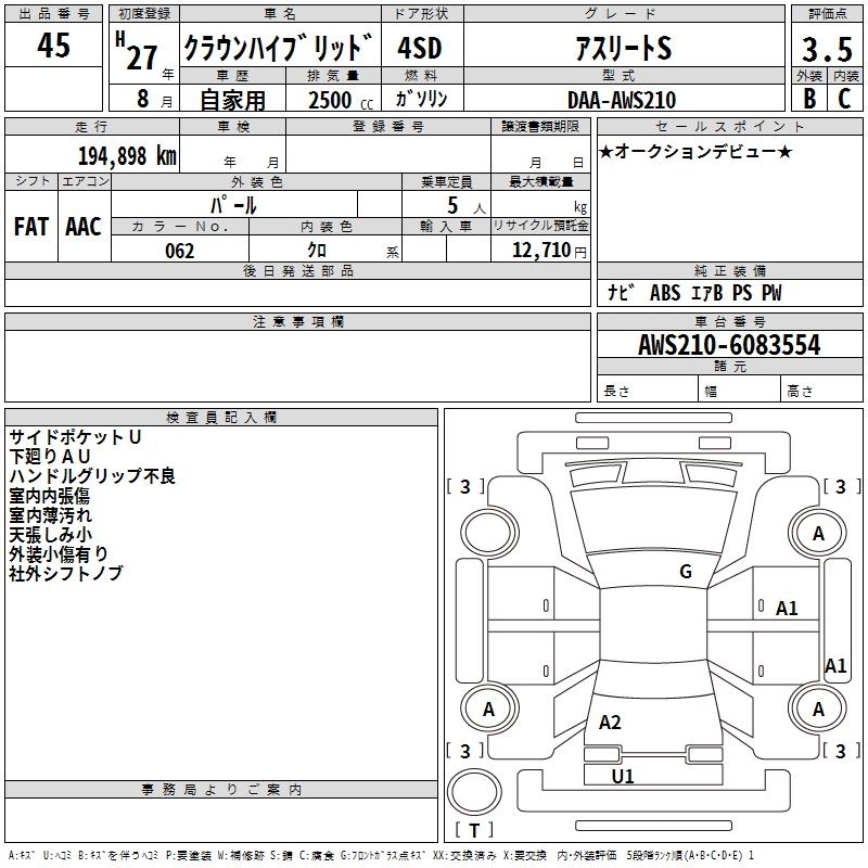 TOYOTA CROWN HYBRID 2015 г., лот № 45