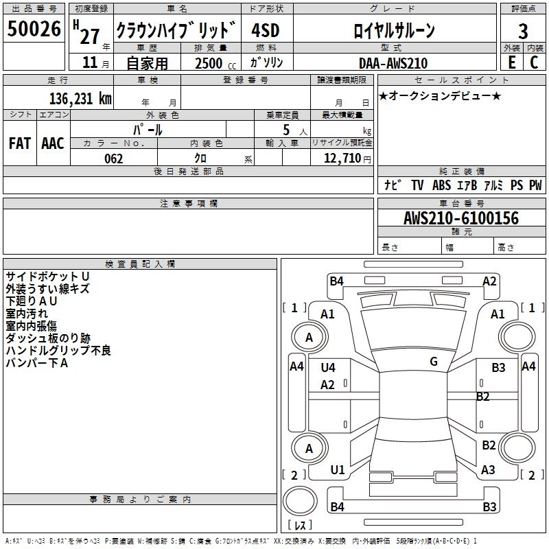 TOYOTA CROWN HYBRID 2015 г., лот № 50026
