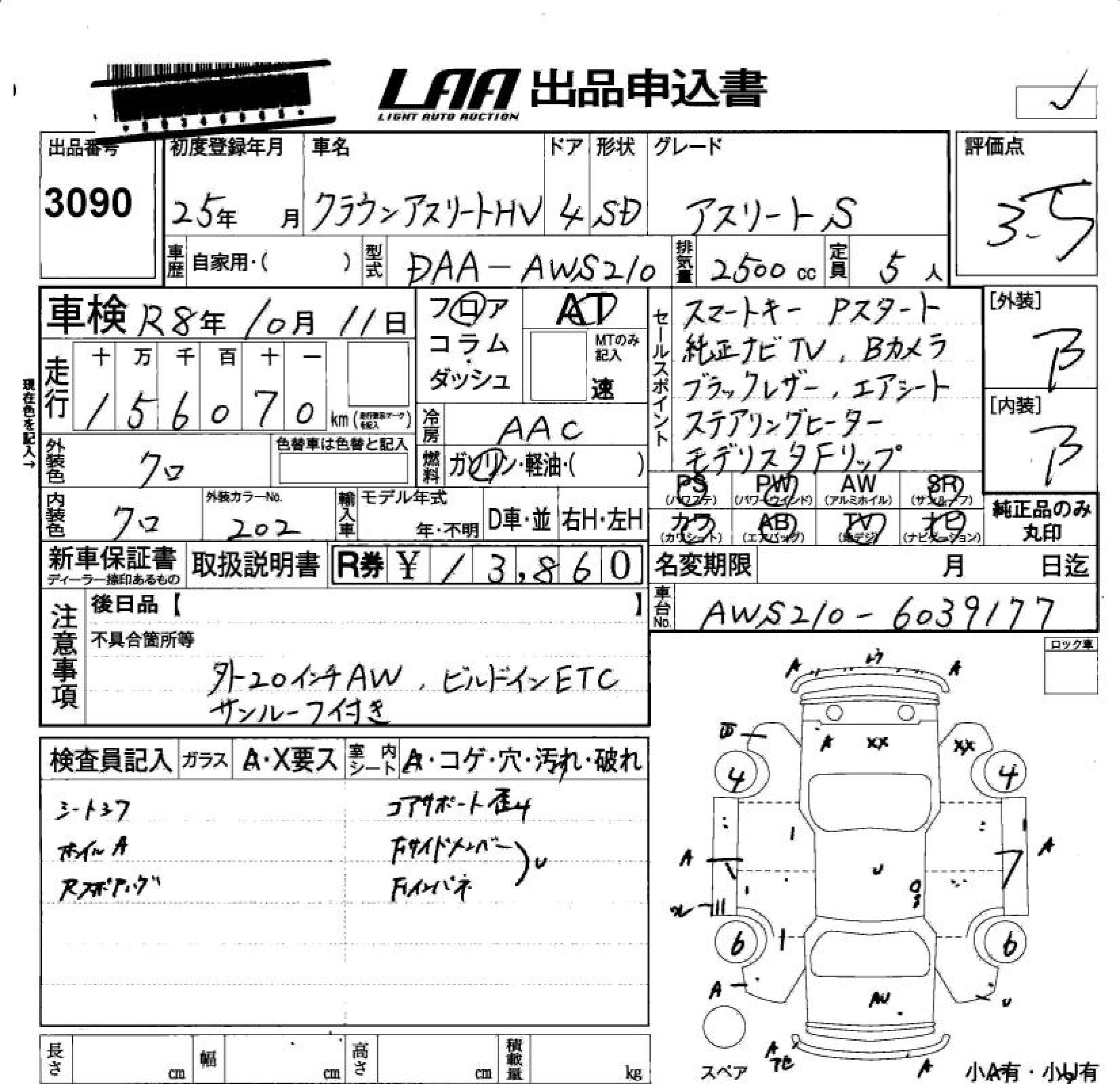 Статус не продан Лот 3090 Аукцион LAA Okayama Дата аукциона 23.01.2026