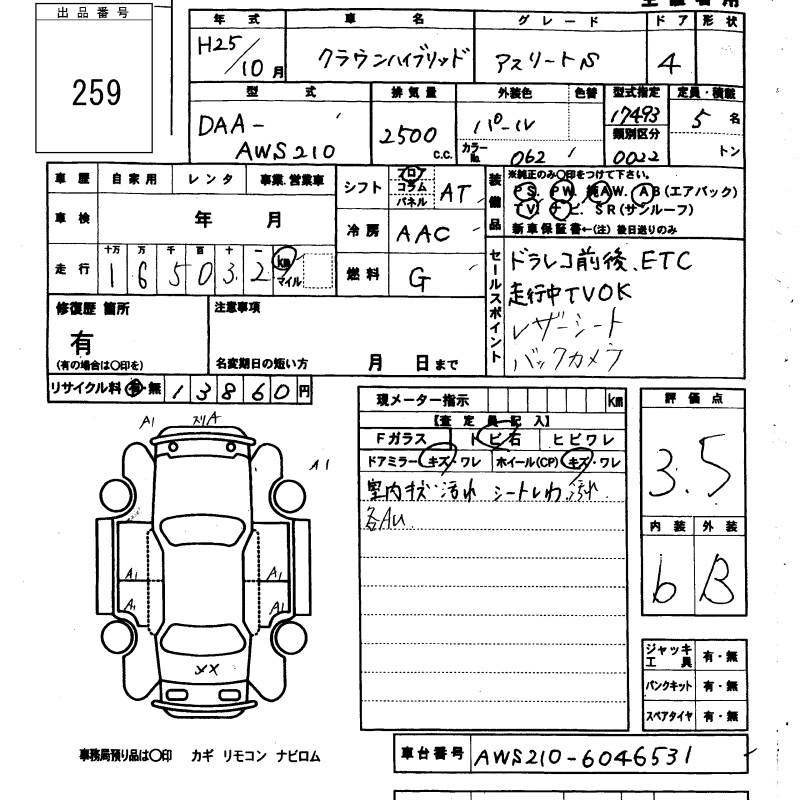 TOYOTA CROWN HYBRID 2013 г., лот № 259