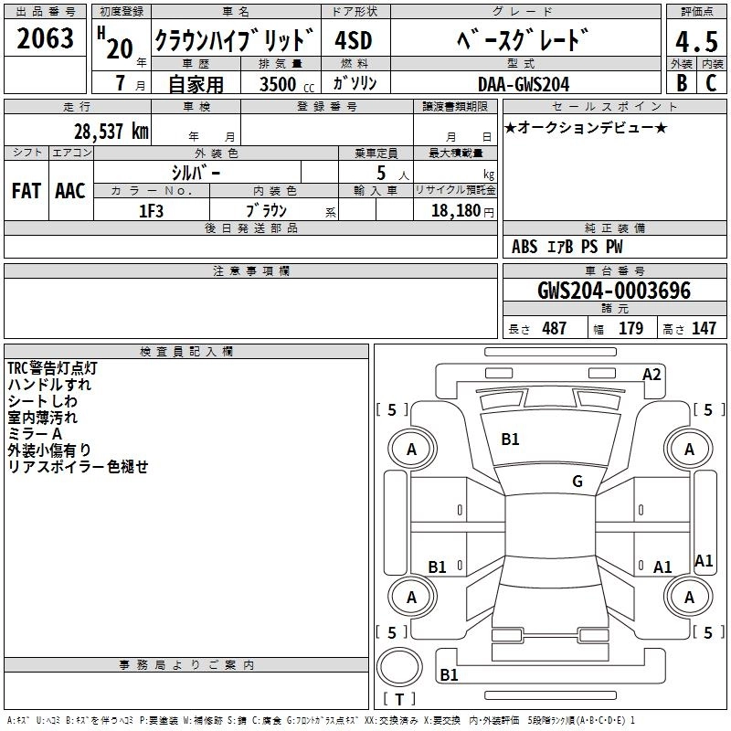 TOYOTA CROWN HYBRID 2008 г., лот № 2063