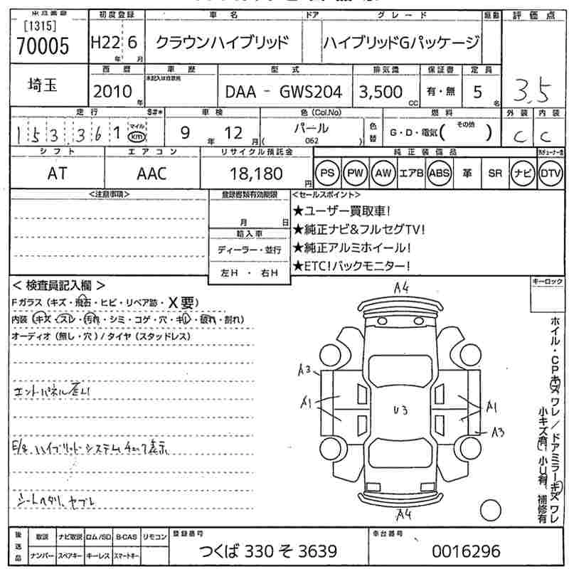 TOYOTA CROWN HYBRID 2010 г., лот № 70005