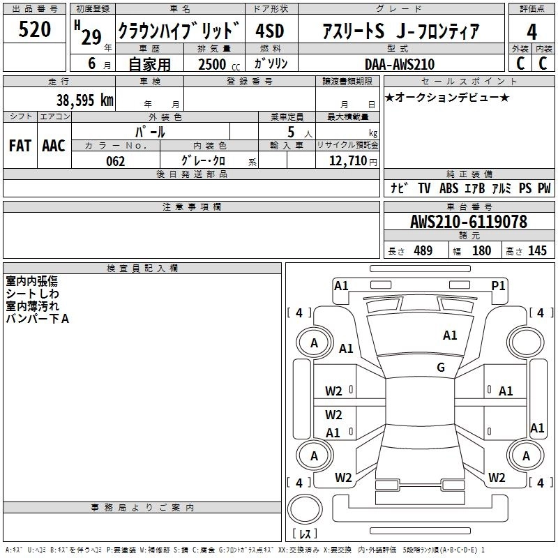 TOYOTA CROWN HYBRID 2017 г., лот № 520